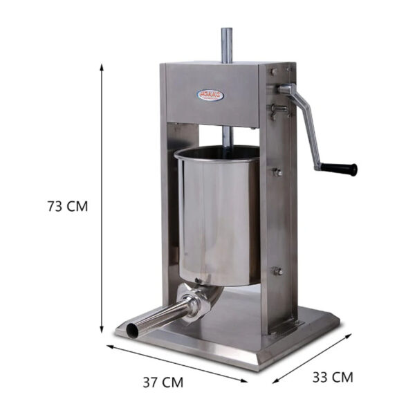 La embutidora consiste en un cilindro o tolva donde se coloca la mezcla de carne y especias que se utilizará para hacer las salchichas, permitiendo rellenar de manera uniforme y rápida diferentes tipos de embutidos o churros.