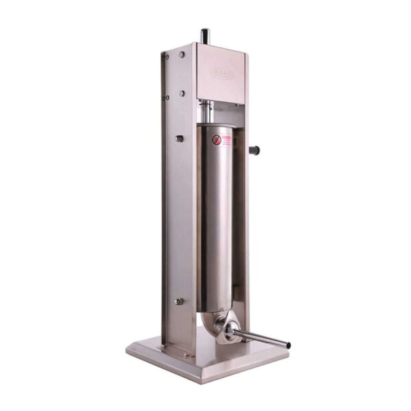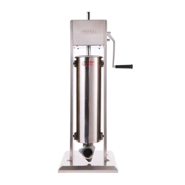 La embutidora consiste en un cilindro o tolva donde se coloca la mezcla de carne y especias que se utilizará para hacer las salchichas, permitiendo rellenar de manera uniforme y rápida diferentes tipos de embutidos o churros.